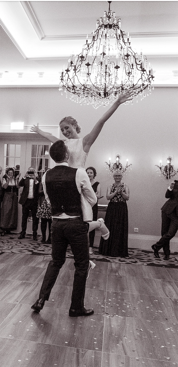 Der erste gemeinsame Tanz als frisch vermähltes Ehepaar soll ein unvergessliches Erlebnis sein: Sich als Einheit auf dem Parkett zu bewegen, gemeinsam die ersten Schritte zu machen, ist ein magischer Moment, in dem das Brautpaar im Mittelpunkt steht. Der Hochzeitstanz steht nicht nur für Tradition, Innigkeit, Leidenschaft und Romantik; er ist auch Ausdruck für Lebensfreude und bietet den perfekten Übergang vom festlichen Teil zum ausgelassenen Feiern eines so emotionalen Tages.